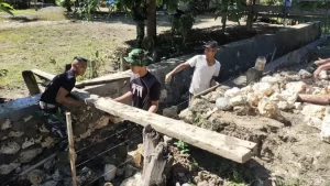 Tumbuhkan jiwa kebersamaan TNI dan Rakyat, anggota Satgas Pamtas RI-PNG Yonif 711/Rks Brigif 22/OM Pos Ujung Karang, bersama masyarakat membangun...