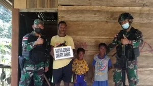Sebagai wujud cinta kasih TNI kepada warga perbatasan Papua, personel Satgas Pamtas RI-PNG Yonif 126/KC Pos Karang, berikan paket sembako...