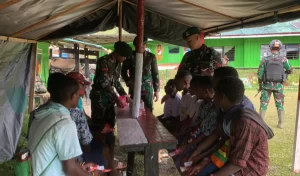 Satgas Yonif Mekanis 203/AK Pos Makki mengadakan sosialisasi cara sikat gigi yang benar kepada pemuda dan anak-anak di Distrik Makki,...