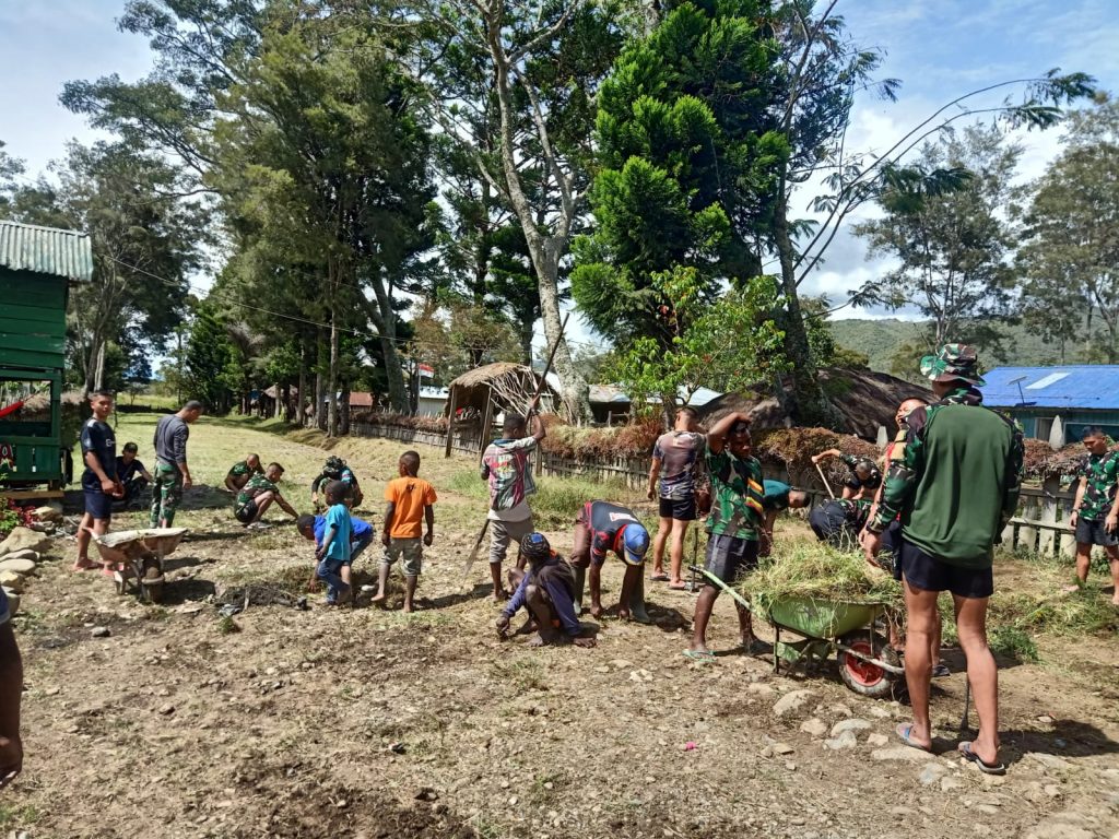 Hal inilah yang dilakukan oleh Satgas Pamtas Yonif Raider 142/KJ melalui Pos Bolakme melakukan kegiatan pembersihan fasilitas umum yaitu jalan bersama warga dihadiri Bapak Yosia Komba selaku Mantan Kepala Kampung sekaligus tokoh masyarakat yang disegani, bertempat di kampung Bolakme, Distrik Bolakme, Kab Jayawijaya, Papua, Rabu(13/07/2022).