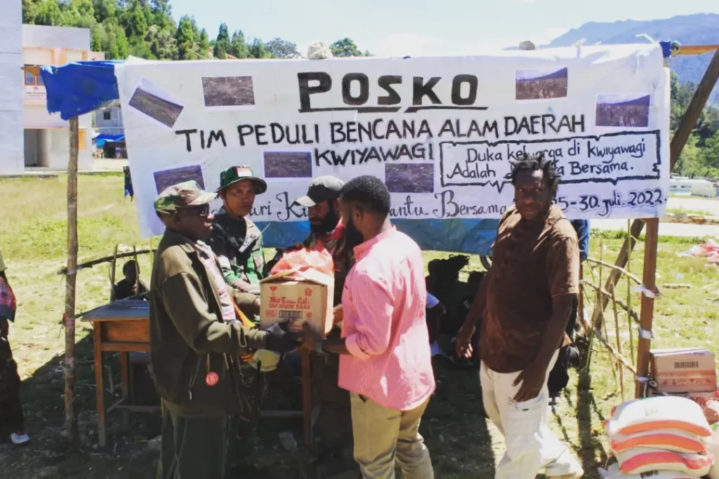 Musibah bencana alam badai salju yang melanda Distrik Kwiyawagi Papua pada hari Minggu (24/07/2022) menimbulkan korban jiwa maupun kerugian baik materi maupun non materi bagi warga terdampak. Sebagian rumah/honai yang mereka tempati mengalami kerusakan, yang lebih parah lagi adalah lahan-lahan berkebun mereka telah rusak akibat bencana badai salju tersebut.