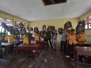 Dalam rangka mendukung proses kegiatan belajar mengajar di wilayah perbatasan Papua, personel Pos Towe Hitam Satgas Pamtas RI-PNG Yonif 126/KC...
