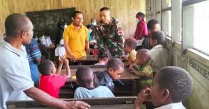 Sebagai wujud kepedulian terhadap tumbuh kembang anak-anak di wilayah perbatasan Papua, personel Pos Somografi Satgas Pamtas RI-PNG Yonif 126/KC bersama...