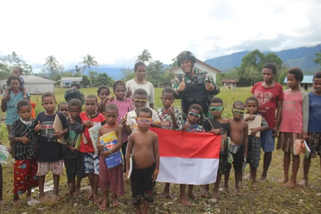 Dalam rangka menyambut HUT RI Ke-77 Tahun 2022, Satgas Yonif PR 431/SSP melaksanakan Bhakti sosial pembagian buku pelajaran, buku cerita, pakaian layak pakai dan mainan kepada anak-anak di Kampung Merek dan Banggai serta Pengibaran Bendera Merah Putih di rumah Masyarakat Kampung Merek dan Banggai, Distrik Kenyam. Rabu, (10/08/2022)