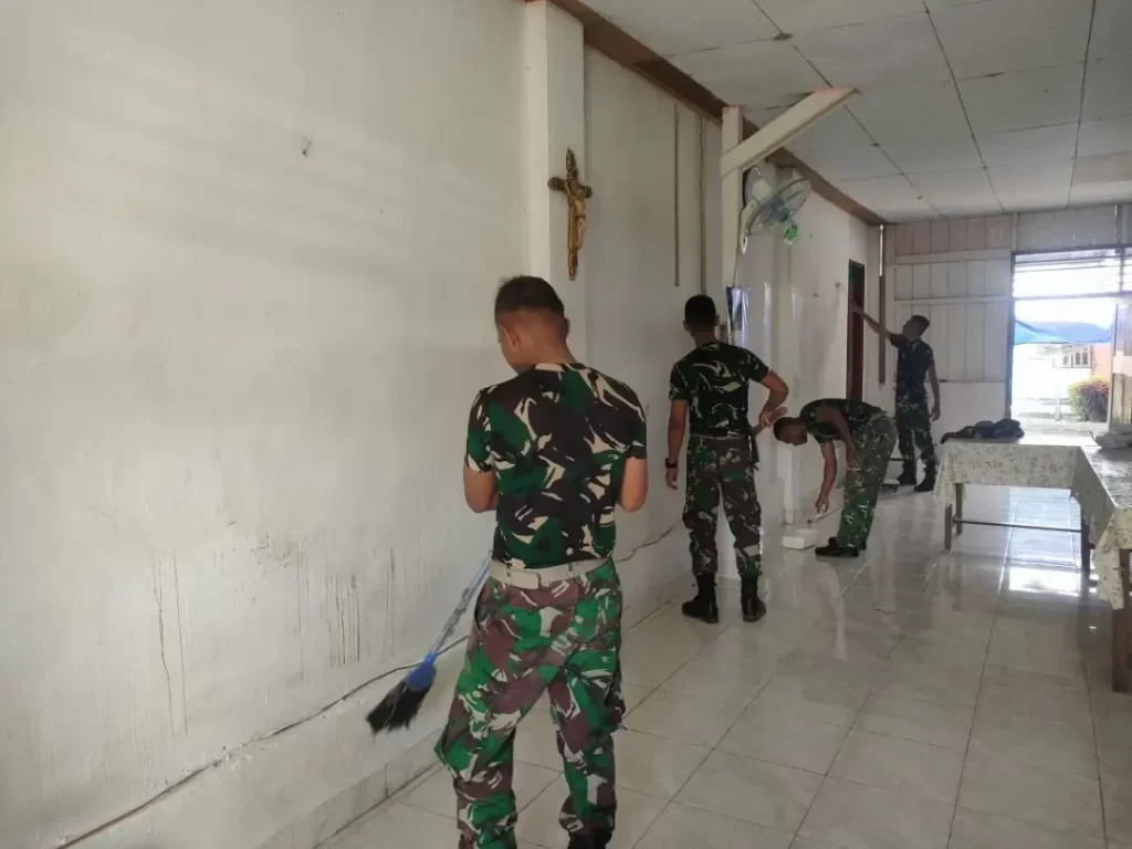 “Yang menjadi sasaran utama adalah pembersihan bagian dalam dan halaman Gereja dengan membuat tempat dapur dan mendirikan terpal agar bisa menjalankan ibadah dengan nyaman,” tambah Danpos.
