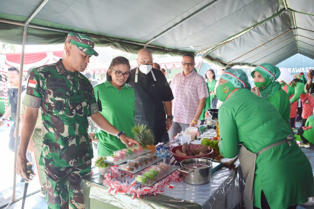 Jayapura – Dalam rangka memeriahkan HUT ke-77 Kemerdekaan Republik Indonesia, Korem 172/PWY melalui Persit Kartika Chandra Kirana (KCK) Koorcab Rem 172 PD XVII/Cenderawasih melaksanakan berbagai lomba. Salah satu lomba yang diadakan adalah lomba memasak dengan menggunakan bahan pangan lokal seperti sagu dan singkong.