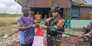 Jelang Hari Ulang Tahun (HUT) Proklamasi Kemerdekaan RI ke 77 tanggal 17 Agustus 2022, personel Satgas Yonif 126/KC Pos Somografi...