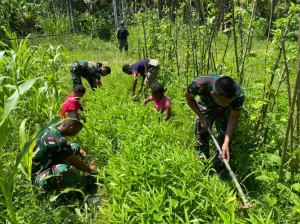 Prajurit TNI Satgas Pengamanan Perbatasan (Pamtas) RI PNG Yonif 711/Rks Brigif 22/OM Pos Wambes mendatangi kebun milik warga, membuat warga...