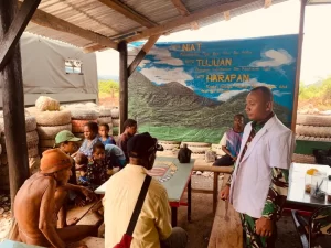 Warga Kampung Skofro Lama, Distrik Arso Timur, Kabupaten Keerom, Papua berbondong-bondong menuju kompleks Gereja yang terlihat terdapat Aparat TNI dan...
