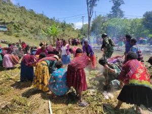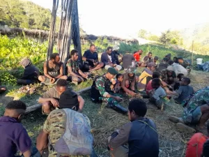 Satgas Yonif Mekanis 203/AK jalin kebersamaan dengan masyarakat di daerah Penugasan Distrik Tima Kab. Lanny Jaya dengan melaksanakan acara tradisi...