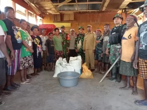 Wujud kepedulian dan perhatian kepada warga di Perbatasan, Satgas Pamtas RI-PNG Yonif 711/Rks Brigif 22/OM Pos Skofro Lama, memberikan bantuan...