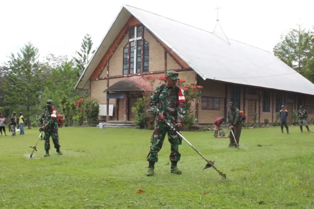 Kodim 1702/JWY bersama warga masyarakat bergerak bersama melaksanakan kegiatan Jumat Bersih dengan menyasar Rumah ibadah Gereja Katholik Paroki Penebus Telnyapike Hepuba di wilayah Kampung Assolokobal Distrik Megapura Kab. Jayawijaya serta jalan Poros Kota Wamena, pada Jumat (19/08/2022).