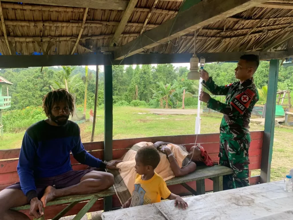 “Melihat keadaan seperti ini, kami sigap dengan memberikan pertolongan pertama dan pengobatan kepada salah satu warga, bahkan langsung dilaksanakan pengecekan darah. Dengan hasil bahwa yang bersangkutan sakit malaria,” jelas Danpos Sawiyatami Satgas Pamtas RI-PNG Yonif 711/Rks Serka Wahidin.