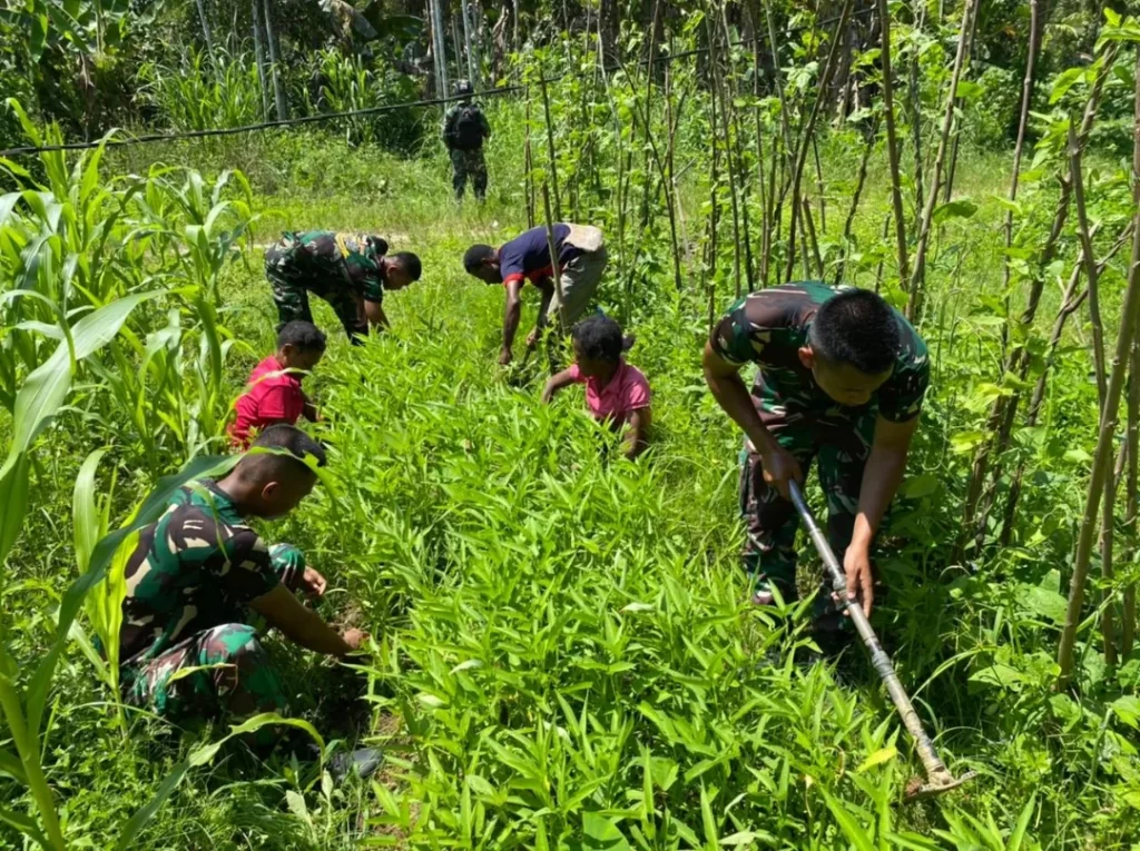Apa itu, ternyata membantu Warga dalam bertani dan berkebun di wilayah perbatasan negara RI di Papua, yaitu berkebun sayur-sayuran dan jagung di Kampung Suskun, Distrik Arso Timur, Kabupaten Keerom, Papua. Minggu (07/08/2022).