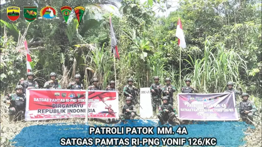 Dalam rangka mempertahankan keutuhan wilayah dan menegakan kedaulatan negara di perbatasan RI-PNG, personel Satgas Yonif 126/KC yang dipimpin langsung oleh Dansatgas Yonif 126/KC Letkol Inf Dwi Widodo, S.H., M.Han. melaksanakan Patroli Patok yang berada di Kampung Banda, Distrik Waris, Kabupaten Keerom.