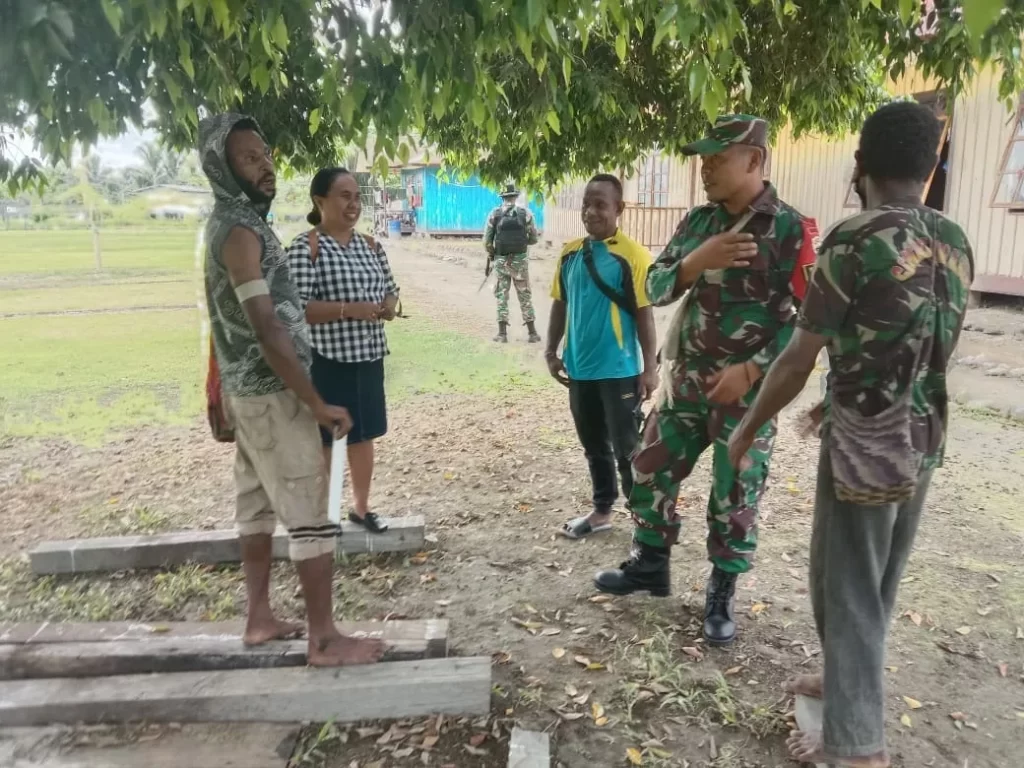 Menjaga hubungan baik dengan lapisan masyarakat, Personel Satgas Yonif 126/KC Pos Batom komunikasi sosial (Komsos) dengan warga Kampung Batom, Distrik Batom, Kab. Pegunungan Bintang.
