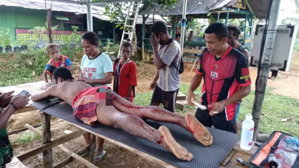 Sungguh tragis apa yang dialami oleh Stepanus (26) yang menderita luka-luka di beberapa bagian tubuhnya akibat diserang babi hutan. Namun selamat karena Tim Kesehatan Satgas Pamtas RI-PNG Yonif 126/KC Pos Somografi dengan sigap mengobati warga tersebut di Kampung Somografi, Distrik Web, Kabupaten Keerom.