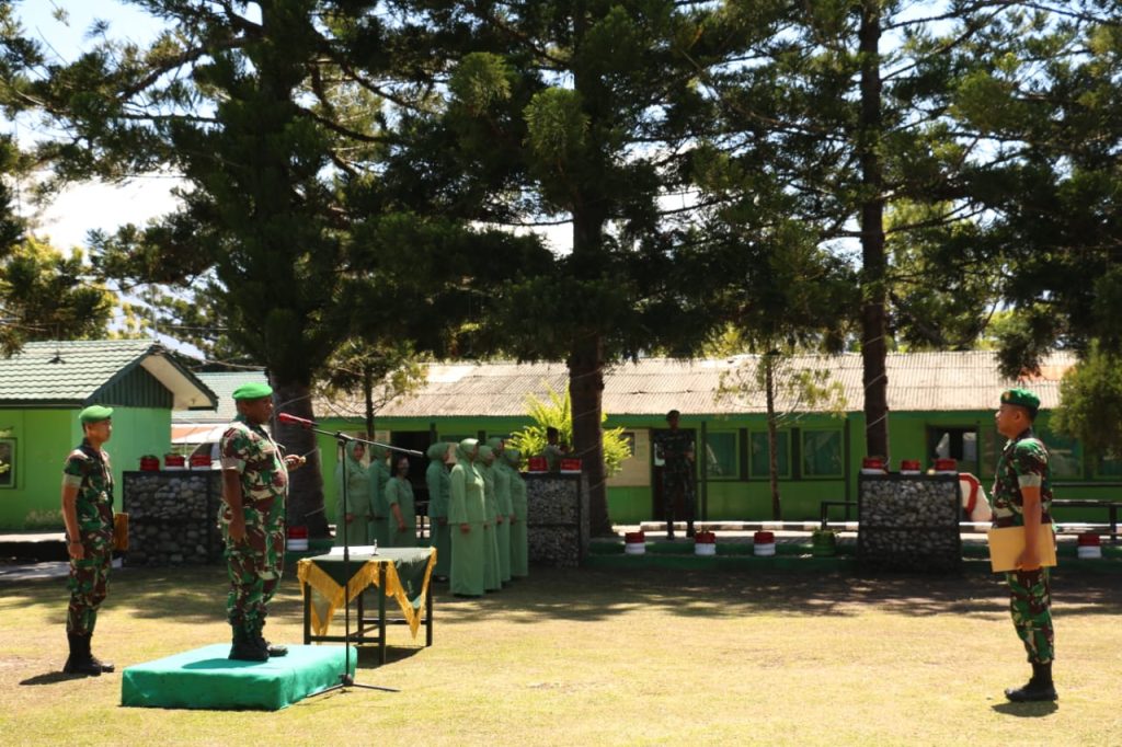 Wamena – Dandim 1702/JWY Letkol Cpn Athenius Murip, S.H.,M.H memimpin langsung tradisi Koprapot pindah satuan, di Lapangan Upacara Makodim 1702/Jayawijaya. (15/09/2022)