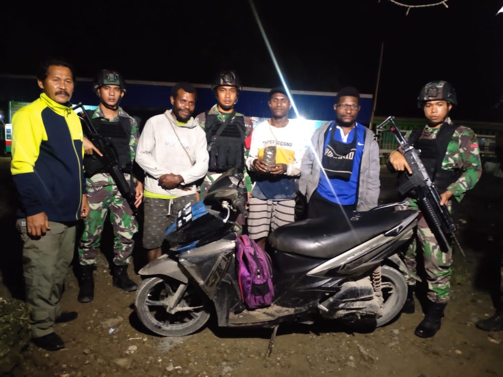 ”Dari pukul 19.00 WIT Pos KM 76 melaksanakan sweeping dengan memberhentikan 2 (dua) orang masyarakat yang mengunakan 1 (satu) motor kendaraan roda dua. Setelah diperiksa, 2 orang pengendara atas nama DM dan MM ditemukan membawa ganja kering yang berada di dalam tas terbungkus plastik dengan berat sekitar 1 ons,” jelas Dansatgas Pamtas RI-PNG Yonif 711/Rks Letkol Inf Mutakbir di Jayapura, Minggu (25/9).