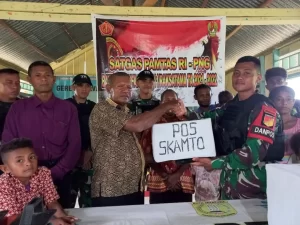 Sebagai wujud kepedulian TNI terhadap umat beragama, Satgas Pamtas RI-PNG Yonif 711/Rks Brigif 22/OM Pos Skamto memberikan bantuan kepada Gereja...