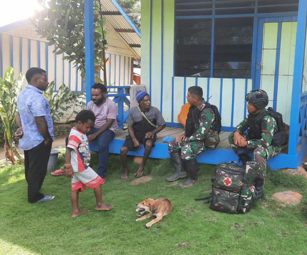 Kali Satgas TNI berkunjung ke rumah beberapa warga yaitu Bapak Tonai selaku kepala kampung Holuon dan Bapak Yunus Yalimake selaku kepala Kampung Tanah Pasir yang dilaksanakan di distrik Elelim, Kabupaten Yalimo, Papua pegunungan tengah, Kamis, (15/09/22)