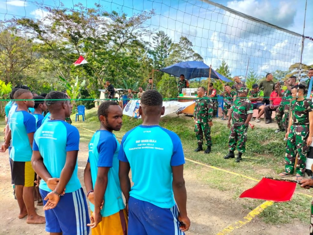 Membaramo Tengah ~ Satgas Pamtas Yonif Raider 142/KJ bersinergi bersama Koramil Kelila dan Polsek kelila menggelar perlombaan Turnamen Bola Voli untuk masyarakat Kelila, Distrik Kelila, Kabupaten Mamberamo Tengah, Papua Pegunungan Tengah, Jumat (23/09/22)