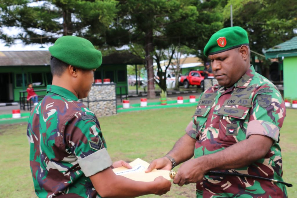 Acara dilanjutkan dengan pemberian piagam penghargaan oleh Dandim 1702/Jayawijaya kepada prajurit yang pindah satuan serta salam-salaman dan photo bersama.
