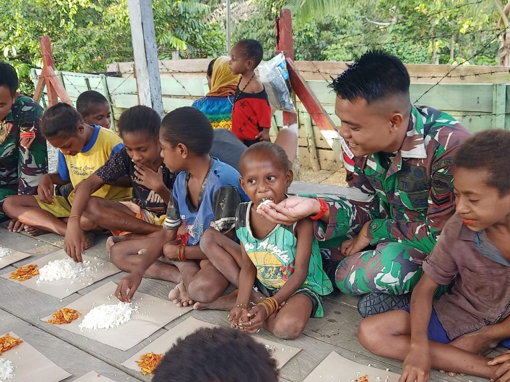 “Pengenalan yang diberikan oleh Satgas mulai dari program yang paling dasar. Disela pelajaran sesekali personel memutarkan film anak-anak agar mereka terhibur kemudian menyiapkan anak-anak makanan untuk dimakan bersama-sama.” ujar Dansatgas.