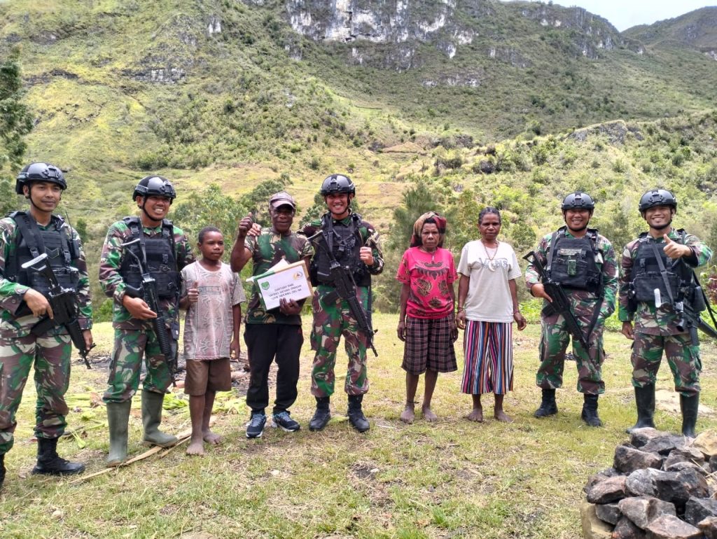“Saya mengucapkan terima kasih banyak kepada Bapak TNI dan keberadaan anggota TNI kerap membantu masyarakat yang kesulitan, sehingga dengan kehadiran Bapak TNI di Kampung Ekanom selalu mendapat sambutan hangat dari masyarakat di kampungnya,” kata Bapak Mes Wanimbo