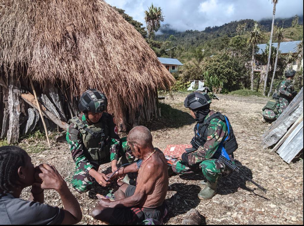 Kepedulian Satgas Yonif Raider 321/GT/13/1 Kostrad kepada masyarakat di Pegunungan Tengah kembali diwujudkan dengan melaksanakan aksi cepat tanggap memberikan pelayanan kesehatan melalui Program Pengobatan Gratis, di Kampung Dal, Distrik Dal, Kabupaten Nduga, Papua.