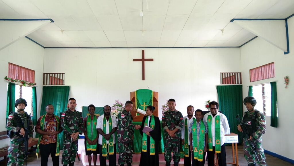 “Pembangunan dilaksanakan di Gereja GKI Domine Edward Katutung, dan diharapkan kelanjutan pembangunan rumah bapak pendeta Mimin Warisal dapat dilakukan sampai dengan rumah beliau berdiri,” tambah Lettu Inf Jefri