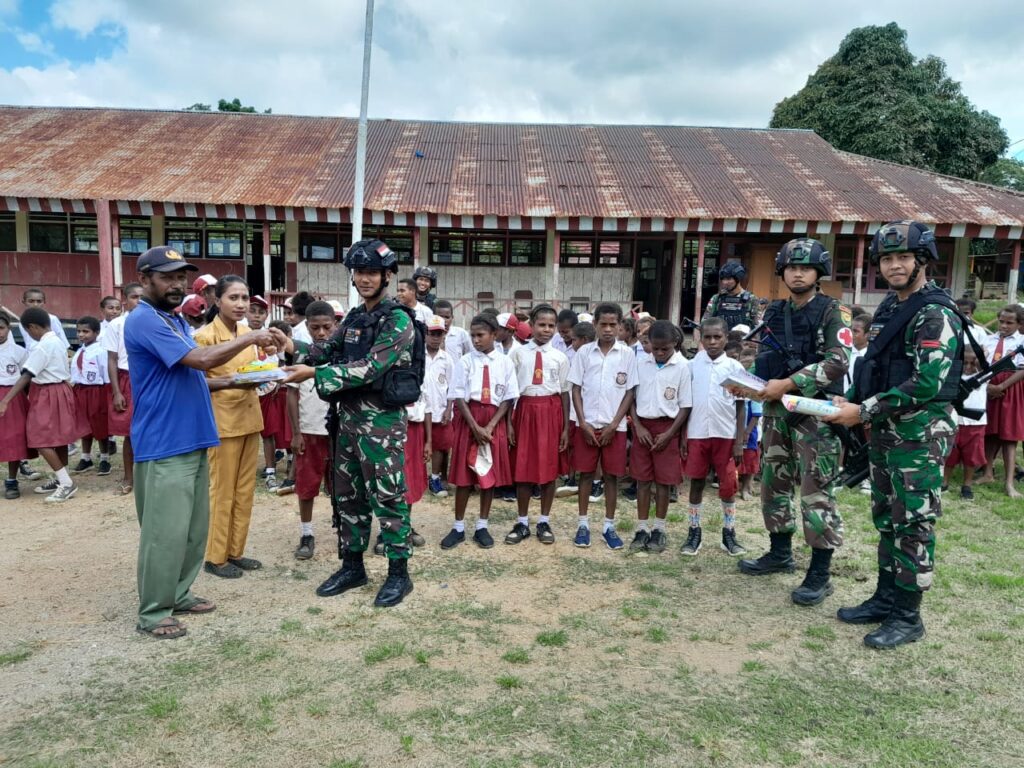 Peduli akan pentingnya pendidikan anak – anak dipedalaman Papua Satgas Pamwiltasrat Yonif 143/TWEJ disamping memberikan bantuan alat – tulis kepada murid SDN Inpres Kampung Yabanda juga memberikan motivasi kepada mereka agar lebih giat belajar dalam menempuh pendidikan guna meraih masa depan yang lebih baik.