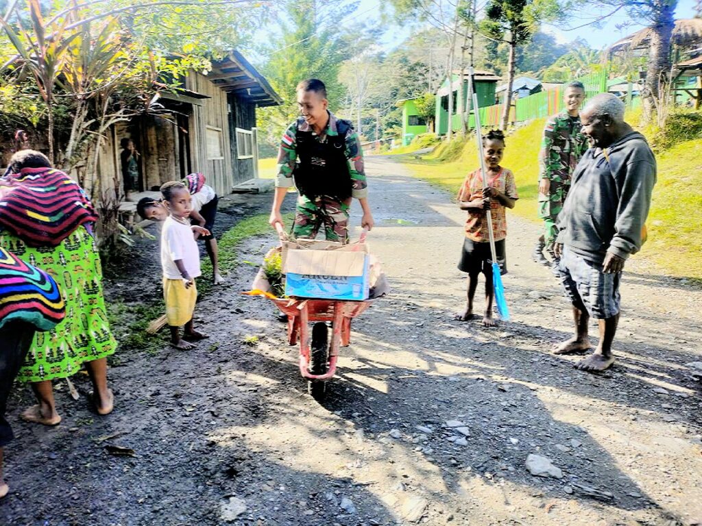 Membaramo Tengah ~ Satgas Yonif Raider 142/KJ melaksanakan kerja bakti bersama Masyarakat di kampung kelila, Distrik Kelila, Kabupaten Mamberamo Tengah, Papua Pegunungan Tengah, Senin(07/11/22)