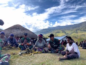 Kanggime - Dalam rangka menjaga dan mempererat hubungan silaturahmi dengan masyarakat, prajurit Satgas Yonif Raider 142/KJ jalin Komunikasi Sosial (Komsos)...