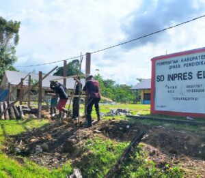 Yalimo - Satgas Yonif Raider 142/KJ melalui Kotis Elelim bergotong royong bersama dengan pihak sekolah dan beberapa warga bergotong royong...
