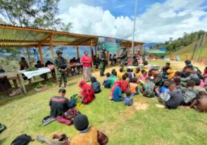 Keerom – Satgas Pamwiltasrat Yonif 143/TWEJ yang berada dibawah naungan Kolakops Korem 172/PWY Kodam XVII/CEN mengajarkan kepada anak- anak tentang...