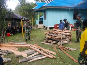 Dalam rangka menjaga dan melestarikan Rumah adat, personel Pos Malagay Satgas Yonif Mekanis 203/AK membuatkan Honai atau Rumah adat asli...
