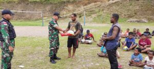 Karubaga ~ Satgas Yonif Raider 142/KJ hadir dan menebar senyum saat melakukan Anjangsana dengan berkunjung ke Jalan Wugi, Distrik Karubaga,...