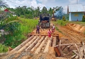 Keerom - Satgas Yonif 143/TWEJ bantu warga membuat jembatan penghubung yang sempat terputus beberapa waktu dikarenakan kondisi kayu yang telah...