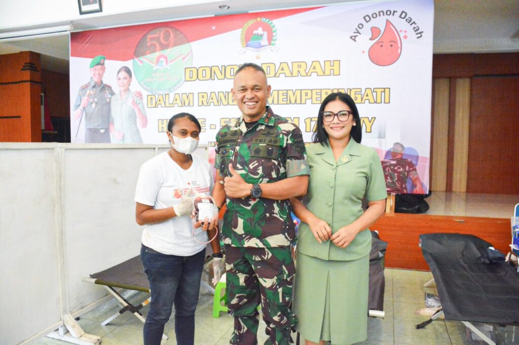 Dalam rangka memperingati Hari Ulang Tahun yang Ke-59 tahun, Korem 172/PWY menggelar bakti sosial Donor Darah bekerjasama dengan PMI Kota Jayapura dan diikuti oleh seluruh prajurit dan PNS Korem 172/PWY serta Persit Kck Koorcab Rem 172, bertempat di Aula Makorem 172/PWY, Abepura, Kota Jayapura, Papua, Sabtu (12/11).