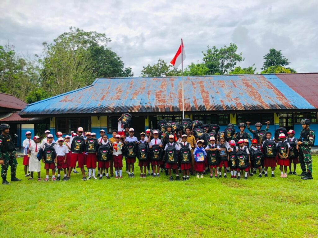 Kab.Keerom – Satgas Pamtas Yonif 132/BS Pos Ampas memberikan motivasi kepada Siswa SD Inpres Ampas, Distrik Mannem, Kab.Keerom, Papua. Pada hari Rabu (16/11).