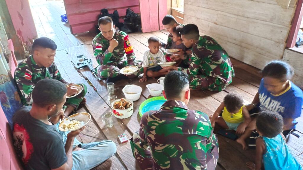 Untuk meringkan beban mama Betti, personel Pos Wambes Satgas Pamtas Yonif 132/BS memberikan bahan pokok seperti beras,telur dan mie serta mengajak mama Betti untuk memasak bersama.