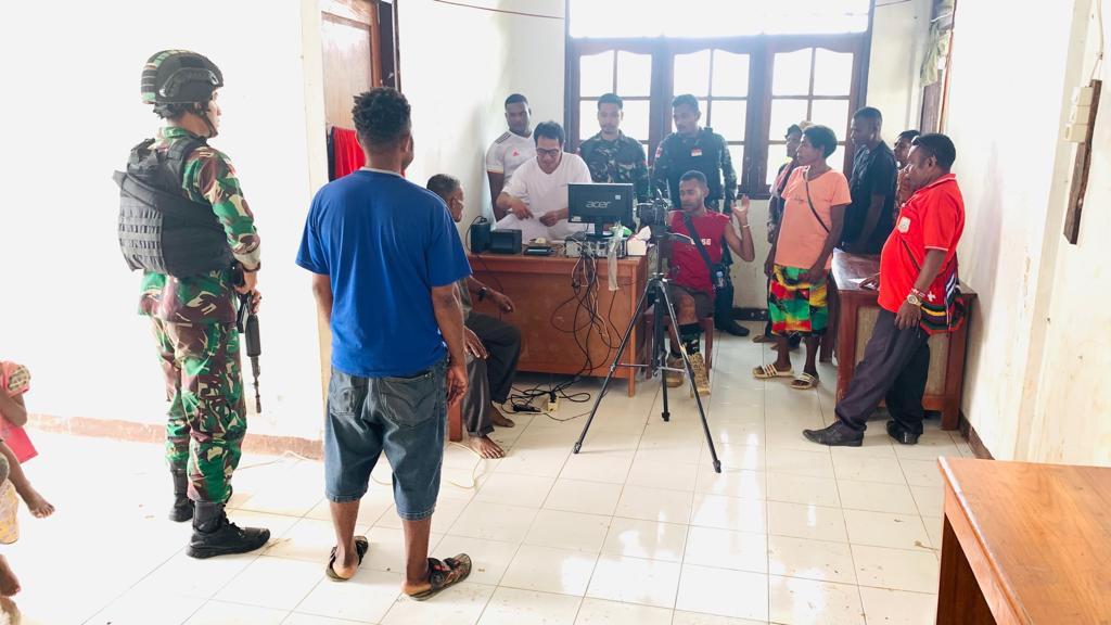 Untuk itu, Prajurit Yonif 143/TWEJ membantu Dinas Kependudukan dan Pencatatan Sipil Kabupaten Keerom dengan mendukung para personel dan alat perlengkapan lainya dalam perekaman pembuatan e-KTP di Balai Kampung Amgotro yang merupakan daerah tugas Satgas Yonif 143/TWEJ Pos Yuruf.