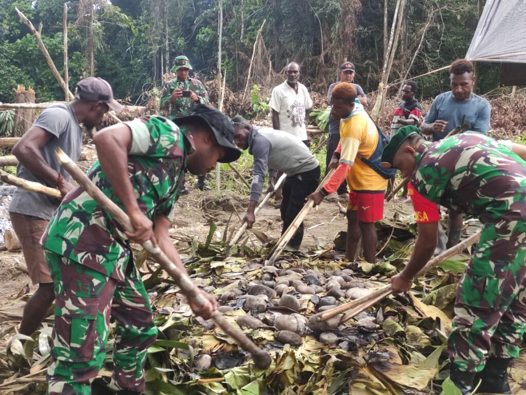 Dari anggota Pos Airu selain menyumbangkan tenaganya juga memberikan sedikit bantuan gula kopi, supermi dan pinang sebagai tali kasih persaudaraan. Intinya disini kita sama-sama saling menjaga agar Distrik Airu aman, damai dan tentram.