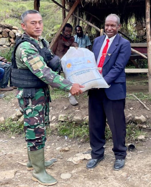 Dalam rangka menyambut perayaan natal, Satgas Yonif Raider 321/GT/13/1 Kostrad Pos Kotis Mbua membagikan sembako kepada tiap-tiap gereja bertempat di Distrik Mbua, Kabupaten Nduga, Papua.