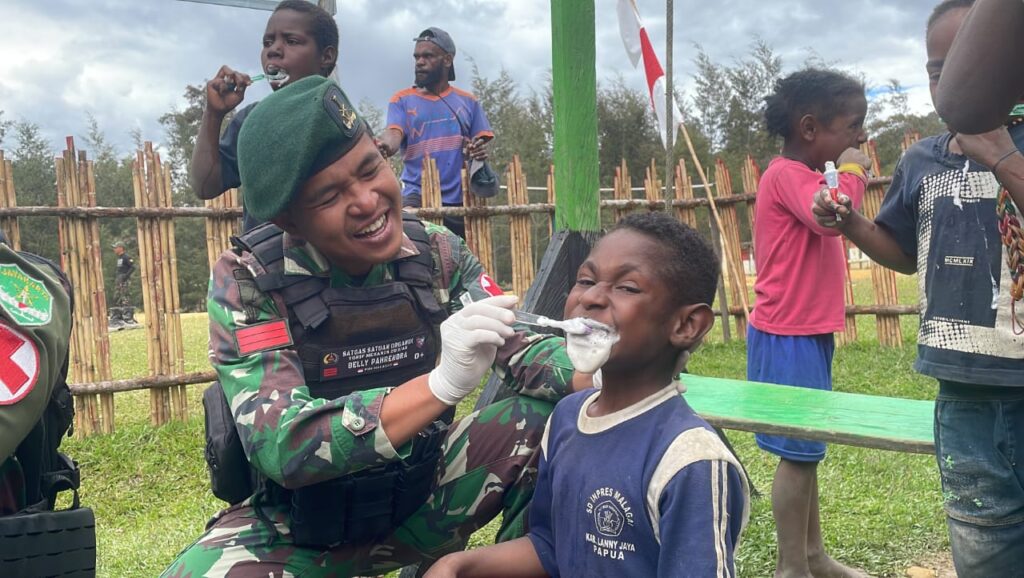 Dalam menyambut Bulan Desember ini Satgas Yonif Mekanis 203/AK Pos Malagay memiliki cara tersendiri yaitu dengan mengadakan sosialisasi sikat gigi kepada pemuda dan anak-anak serta pertandingan bola voli di Distrik Malagay, Kab.Lanny Jaya, Papua. Kamis, 01/11/2022.