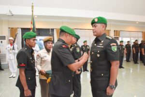 Jayapura – Kasrem 172/PWY Kolonel Inf Bayu Sudarmanto mewakili Danrem 172/PWY memimpin serah terima jabatan Kepala Seksi Logistik (Kasilog) Kasrem...