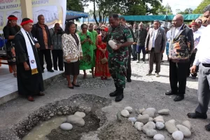 Wamena - Dandim 1702/JWY didampingi ketua Persit Kodim 1702/JWY menghadiri acara ibadah peletakan batu pertama dalam rangka pembangunan kantor Klasis...