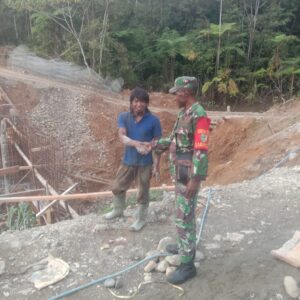 Keerom, Babinsa Koramil 1701-07/Web Serda Tinus Yebreb melaksanakan pemantauan di wilayah binaan sekaligus Komsos dengan masyarakat yang merupakan pekerja Jembatan...