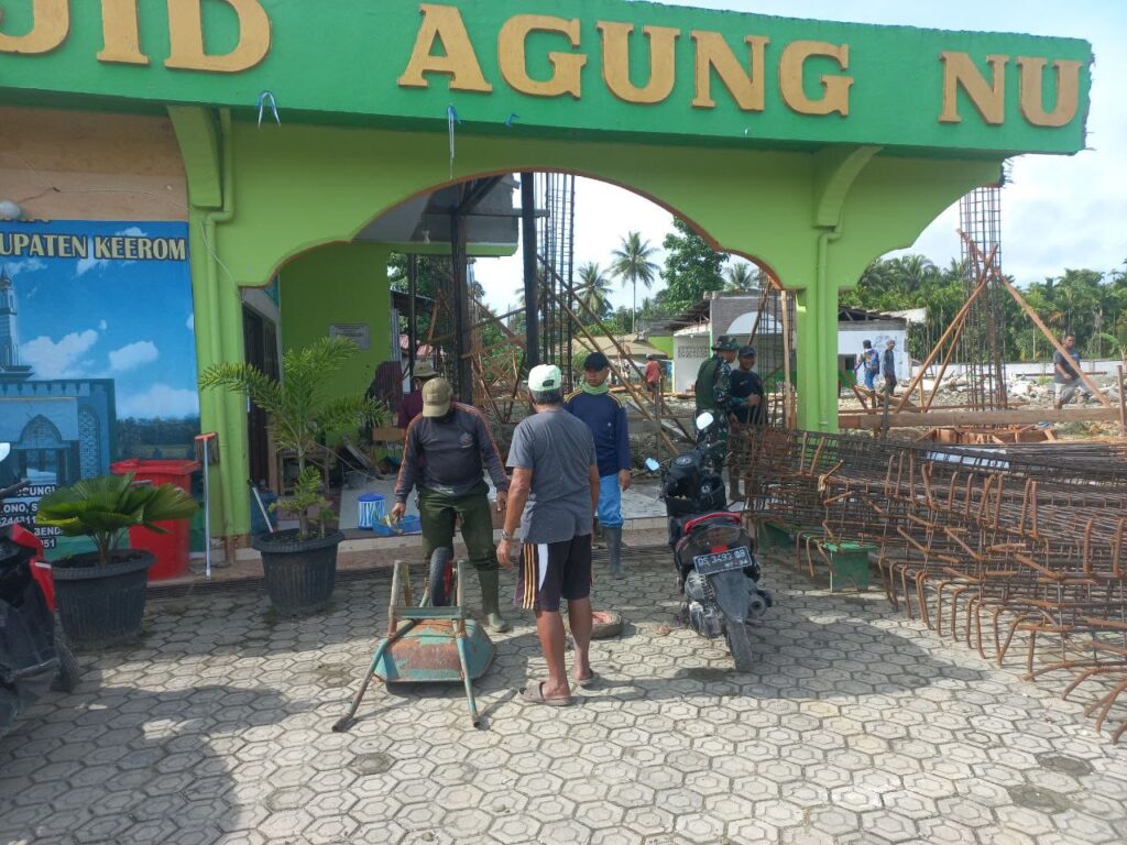 Babinsa Koramil 1701-04/Arso, Serka Malik bersama 3 orang anggota melaksanakan Karya Bakti pembangunan Masjid pemasangan pilecap dan tiang di Masjid Agung Nurul Huda Kampung Yuwanain Distrik Arso Kab.Keerom. Sabtu (21/1/2023)
